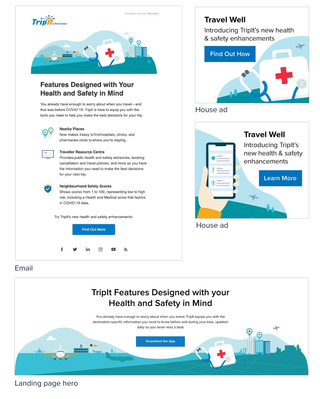 This is an example of assets for a campaign final delivery: Email HTML set, hero image, house ads, social media assets, GIFs, and web page hero.